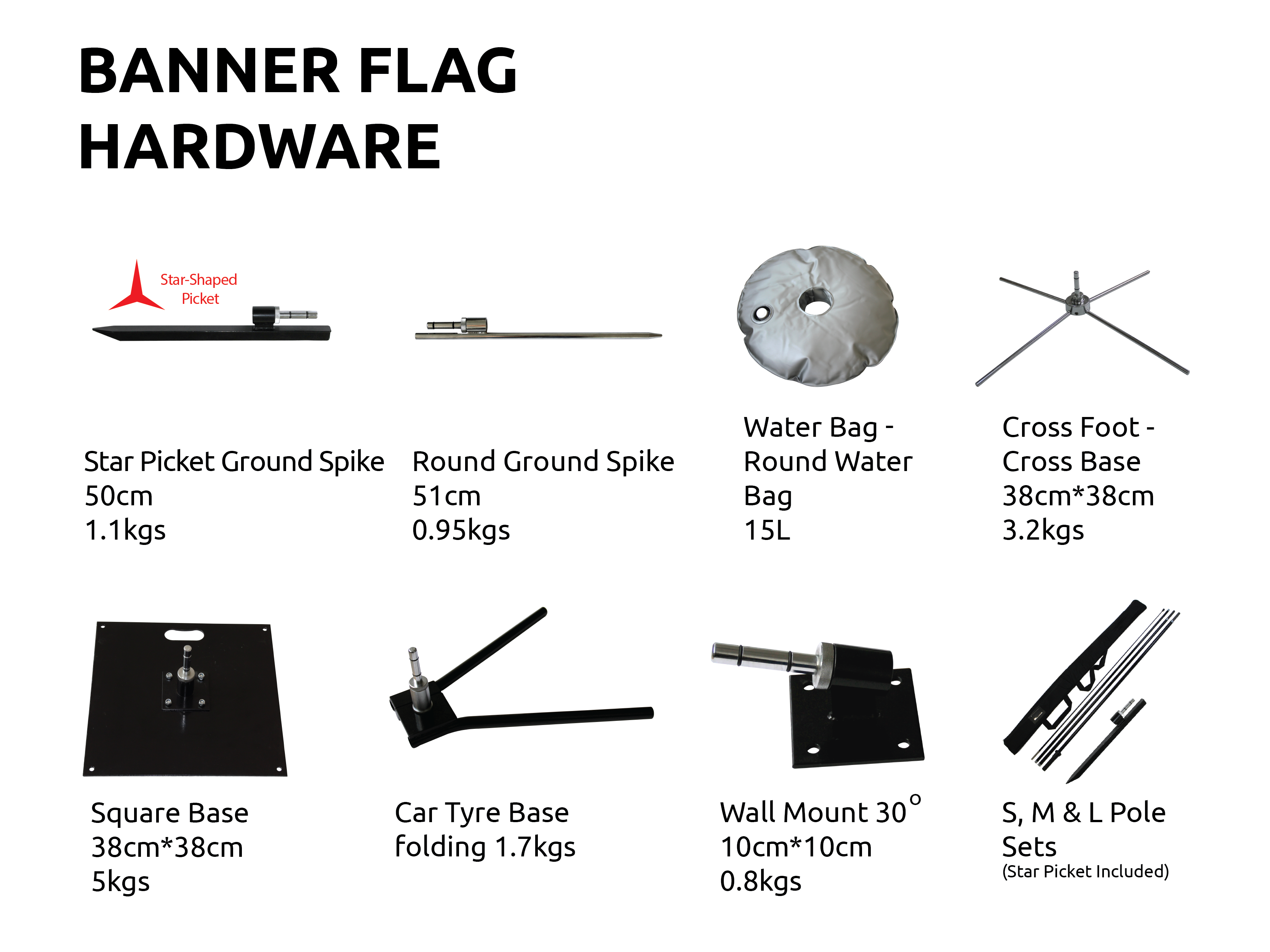 Add to the functionality of your flag with these easy to use accessories that may help you set up your promotion exactly how you want.